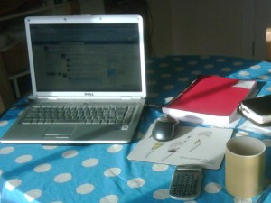 I’ve just realised that I am officially (and literally) a kitchen table entrepreneur – mainly because, after working for a few months in the home office, I began to slowly migrate to the kitchen one book at a time. First of all, I’d use the kitchen table when I needed more space, using it to spread out books when I was writing or review reports, proposals and strategy documents I’d prepared by laying them out across the table, red pen at the ready.